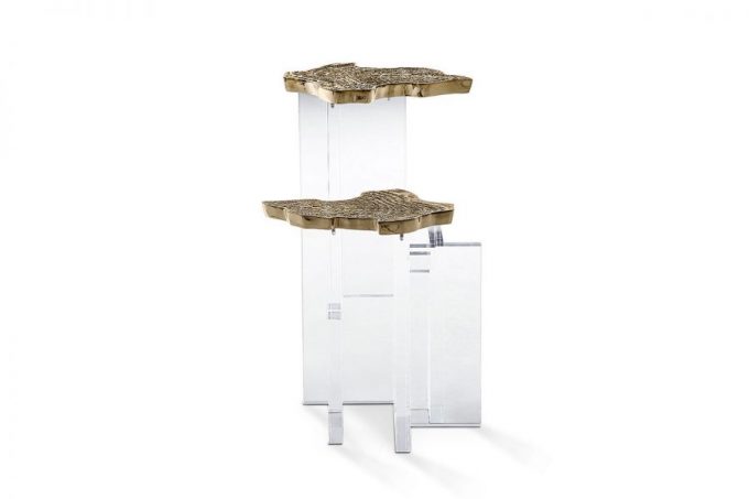 Influenced by the impressionist movement, and paying tribute to one of the era’s greatest painters, the Monet side table is a sophisticated furniture piece with a modern design twist. Featuring both contrasting shapes and materials, from a geometric acrylic base to an organic surface made from cast brass, in a unique textured finish, the Monet is an exclusive furniture piece that stands out due to its perfectly balanced synthesis.